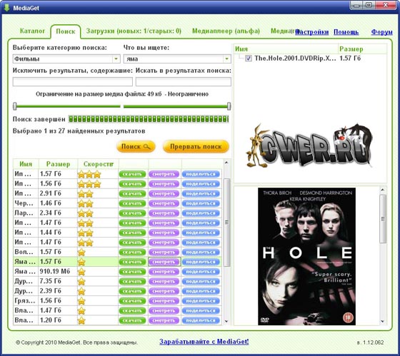 MediaGet - утилита для поиска и скачивания медиафайлов на открытых торрент-трекерах. Каждый человек, пользующийся интернетом, привык скачивать из сети различную музыку, фильмы или игры напрямую с сервера. Но бывают ситуации, когда на любимом сайте искомый файл отсутствует по каким-либо причинам... В этих случаях на помощь приходит замечательный сервис MediaGet, который откроет вам доступ в мир закрытых пиринговых сетей, в которых возможно найти практически любой нужный вам файл. Будь то редкая музыка, недавно вышедший фильм или любая программа - всё это можно скачать с помощью MediaGet. Программа поддерживает огромное количество открытых торрент-трекеров, вы без труда найдете нужный вам файл и скачаете на максимальной скорости.