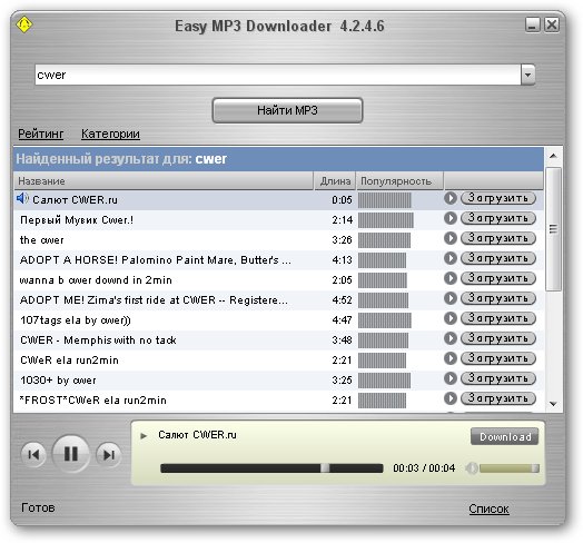 Easy Mp3 Downloader – простая и полезная утилита для поиска и загрузки музыкальных файлов. С помощью данного приложения из Интернета можно скачать бесплатную музыку. Приятный интерфейс не причиняет ни малейшего неудобства при использовании. После установки и настройки Интернет-доступа (при наличии межсетевого экрана), программа сразу готова к выполнению своих функций.