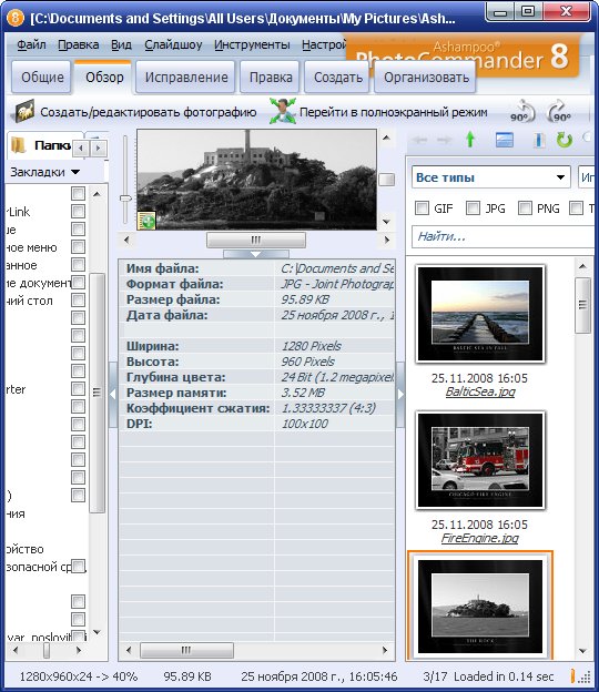 Ashampoo Photo Commander помогает организовать и просматривать ваши снимки, редактировать и улучшать их, и все это в одной программе. Кроме этого, с помощью программы можно управлять вашими аудио и видео файлами. Процесс работы сводится к нескольким нажатиям клавиш - добавляйте рамки, правьте ваши фотографии, создавайте поздравительные открытки, коллажи и слайд-шоу, записывайте фотографии на CD/DVD или выкладывайте их на вебсайт, и многое другое. Новый интуитивно-понятный интерфейс позволяет всегда видеть, какие функции доступны, все настолько просто, что не нужно обращаться к руководству. Программа поддерживает свыше 60 графических, аудио и видео форматов.