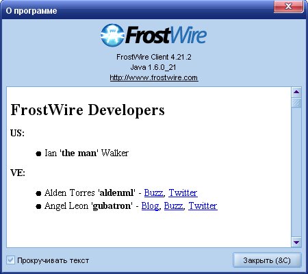 Скачать программу FrostWire 4.21.2 Final (7,92 МБ):