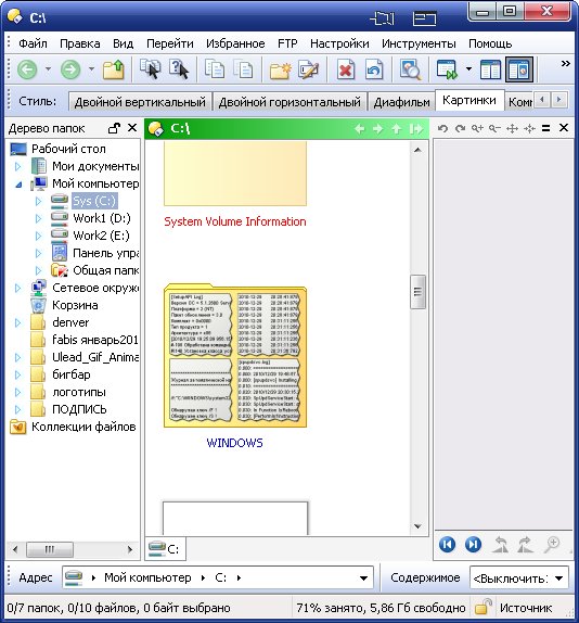 Directory Opus - мощная альтернатива Проводнику с настраиваемым интерфейсом, встроенным ftp-клиентом, внутренней поддержкой архивов, просмотром изображений, встроенным командным языком, настраиваемыми горячими клавишами для управления и очень большим числом других полезных при работе с файлами опций. Например, поиск дубликатов, безвозвратное удаление файлов, поддержка SSL и SSH/SFTP, конвертирование графики и т.д.