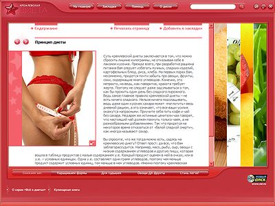 • Раздел «Снижаем вес» познакомит Вас с принципами диеты, поможет подготовиться к ней, а также даст пару-тройку хороших советов для начинающих.