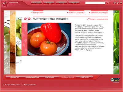 • Если Вы уже не в состоянии дальше слушать это перечисление, тогда скорее к главе «Овощи ДА фрукты». Здесь Вашему вниманию представлено все разнообразие блюд из овощей и фруктов. В конце каждого рецепта в обязательном порядке указана «стоимость» блюда в у.е.