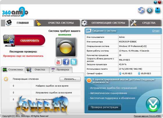 360Amigo System Speedup - инструмент, который поможет вам оптимизировать работу компьютера и исправить ошибки в его работе. В программу 360Amigo System Speedup входят инструменты для очистки системы, оптимизации системы и целый набор инструментов, созданных специально для улучшения работы компьютера.