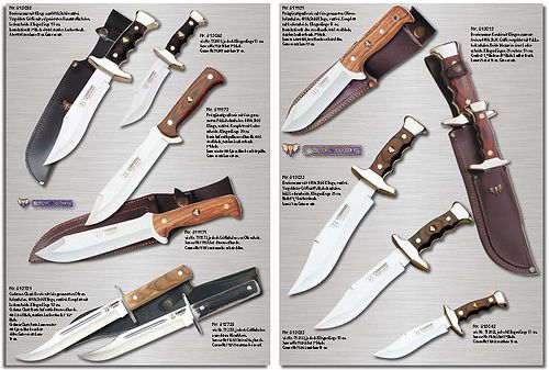 В каталоге представлены охотничьи ножи, ножи с рукоятками из традиционных натуральных материалов, складные ножи, кинжалы, филейные, рыболовные и спортивные ножи, а также столовые и кухонные ножи, ножницы, ножи от других производителей и многое другое.