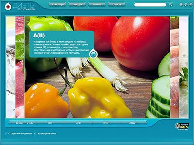 - В разделах «0(I)», «A(II)», «B(III)», «AB(IV)» приведены сотни рецептов блюд, в которых использован самый доступный набор продуктов. Любой человек, знающий свою группу крови, сможет составить свое собственное меню и питаться, постепенно сбрасывая вес.