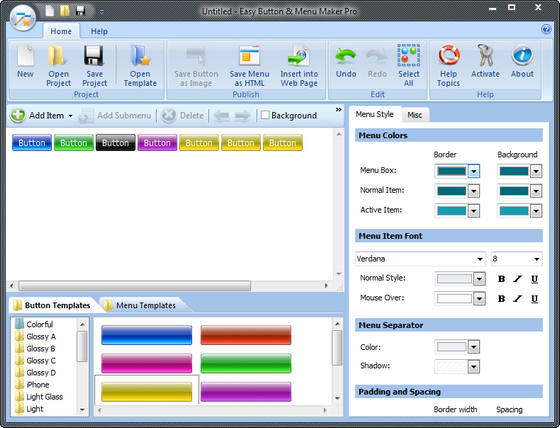 Easy Button & Menu Maker — программа для создания кнопок и динамических меню для веб-сайта за считанные минуты. В программу включено более 100 элегантных готовых шаблонов включая самые популярные — Glass и Vista. В отличие от большинства других программ, Easy Button Menu Maker Pro имеет WYSIWYG редактор, который значительно ускорит создание кнопок или меню сайта. Кнопки, созданные в программе являются простыми, компактными и совместимыми со всеми современными веб-браузерами.