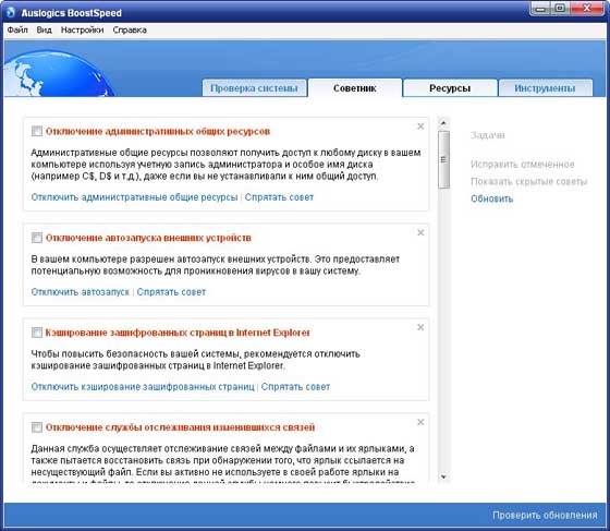 AusLogics BoostSpeed - единственная программа, которая позволит вам быстро и качественно произвести настройку вашей системы на максимальную производительность. Встроенный System Adviser проверит настройки вашей системы с помощью 50 различных тестов и предложит вам рекомендации по каждому тесту. Программа в реальном времени проверяет вашу систему и если находит, что какой-то из параметров можно оптимизировать, то обязательно проинформирует вас.