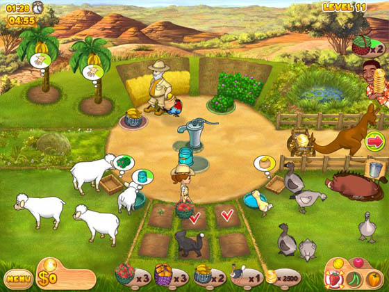 Наши друзья Анна, Боб и Бабушка возвращаются снова! На сей раз, будучи на каникулах, они решили принять участие в соревновании на звание Лучшего Фермера. Помогите доказать им , что они лучше всех! Путешествуйте с нашими героями по жарким странам, посетите Австралию, Египет и Китай. В игре Farm Mania: Hot Vacation появились нововведения. Теперь вы будете заботиться об экзотических животных, таких как страус, антилопа, павлин и многих других. Также вы получите возможность выращивать киви, гранат и папайю...