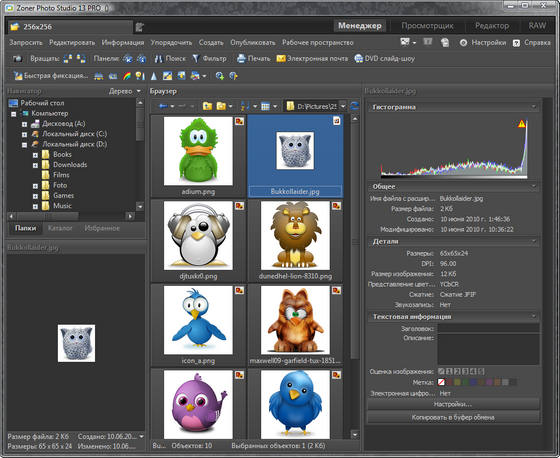 Zoner Photo Studio - это инструмент, который безопасно проведет пользователя через все этапы процесса управления и обработки цифровой фотографии: получение, правка, архивация и публикация. Универсальное решение «все в одном» предоставляет пользователю исключительный комфорт во время работы без необходимости постоянно переходить из одной программы в другую. Профессиональная версия предназначена для всех продвинутых пользователей цифровых фотоаппаратов и сканеров, которые хотят легко, быстро и эффективно обработать свои фотографии. Программа содержит обширный набор инструментов для комплексной обработки цифровой фотографии на компьютере. Ее качества оценит каждый опытный пользователь цифрового фотоаппарата.