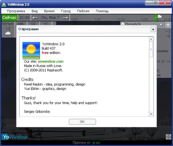 Скачать программу YoWindow 2.0 Build 437 (4,21 МБ):