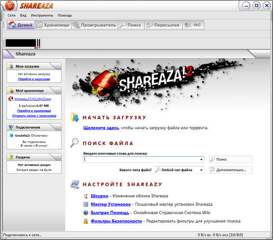 Так почему бы не сменить шкурку? Вы можете выбрать оформление из большого количества уже готовых, или, даже, создать свой собственный дизайн и поделиться им со всем миром! Shareaza сумеет вам понравиться!