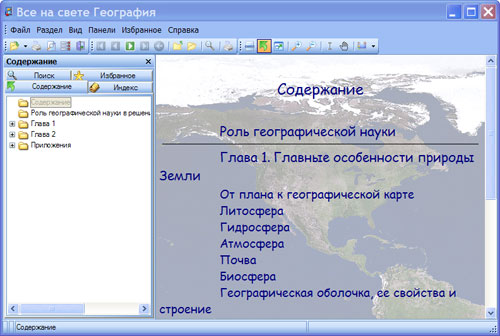 Очередной компакт-диск научно-популярной серии "Все на свете" посвящен географии. Удобно разделенный на две части, электронный справочник расскажет вам вначале все об устройстве Земли. О зарождении нашей родной планеты, ее материках и литосфере, об ее бесчисленных водоемах - гидросфере, об атмосфере и биосфере и, - как правильно составлять и читать географические карты.