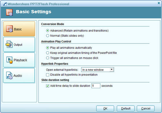 Wondershare PPT2Flash Professional позволяет c легкостью создавать профессиональные Flash презентации в несколько кликов. С данной программой, вы можете добавить тексты, графику, звуки, flash фильмы для своих презентаций. Присутствует возможность создавать содержание SCORM/AICC для LMS. Программа интегрируется в PowerPoint что дает возможность одновременно работать в двух приложениях.