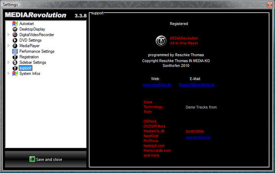 MEDIARevolution - медиаплеер с огромным диапазоном функций, в котором вы действительно нуждаетесь на своем ПК! Кроме проигрывания видео и аудио файлов, вы получаете возможность управления медиаколлекцией и цифровой видеомагнитофон. Программе требуется сравнительно мало оперативной памяти и ресурсов процессора. Гибкие настройки и дружественный интерфейс помогут настроить плеер индивидуально каждому пользователю, а эквалайзер с многочисленными опциями даст возможность добиться нужного звучания. Программа может: проигрывать аудио и видео файлы, работать как будильник, "усыплять и пробуждать" компьютер, создавать плейлисты, с её помощью можно просматривать и записывать телепрограммы и радиотрансляции.