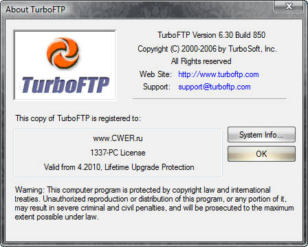 Скачать программу TurboFTP 6.30 Build 850 (7,69 МБ):