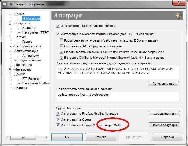 Для повышения удобства использования, Download Master интегрируется в Internet Explorer, Firefox, Google Chrome New!, Mozilla, Opera, Netscape Communicator и другие, заменяя стандартный модуль закачки. Кроме того, программа следит за буфером обмена, обнаруживая ссылки. Download Master позволяет загружать, сохранять и просматривать видео с таких видеосервисов: YouTube, Google Video, RuTube, Видео@mail.ru, Rambler Vision.