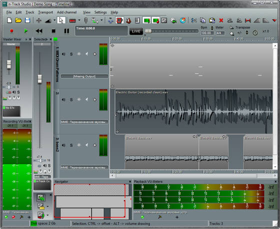 n-Track Studio поможет вам превратить ваш компьютер в домашнюю звукозаписывающую студию. Программа представляет полнофункциональную многотрековую аудиостудию, позволяющую в домашних условиях создавать свои собственные профессиональные музыкальные композиции. Вы сможете записывать и воспроизводить огромное число аудио и MIDI треков одновременно, накладывать всевозможные эффекты на каждый трек, работать с каналами и т.д. Кроме стандартных эффектов (Reverb, Compression, EQ, Echo, Auto volume, Pitch Shift и Chorus), программа позволяет подключать DirectX и VST 2.0 плагины от сторонних разработчиков. N-Track Studios может работать с любыми стандартными или многоканальными 16 и 24-битными звуковыми картами.