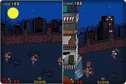 Социальная java-игра на злободневную тему. Реформа сноса ветхого жилья идет полным ходом, пока строители-разрушители не столкнулись с упорными жителями одного старого дома. Они не хотят покидать старый и уютный дом и все встали его защищать. Оборона происходит с помощью различных подручных средств. Жильцы сплотились вместе и дают отпор гастарбайтерам. Возьми роль командира и организуй оборону развалюхи, используя разумно каждого жильца. За подбитых гастарбайтеров получи очки для усиления защиты. Отбейте атаки строителей-разрушителей. Размер экрана: 240x320.