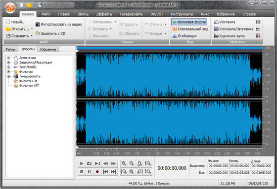 AVS Audio Editor - профессиональный аудиоредактор, позволяющий вам редактировать, записывать и кодировать музыку. В программу встроено более 20 эффектов и фильтров, в том числе задержка, фленджер, хорус, реверберация, фильтры для удаления раздражающих звуков, таких как "vuvuzelas", рев болельщиков и т.д.