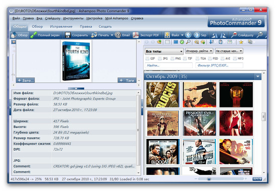Ashampoo Photo Commander помогает организовать и просматривать ваши снимки, редактировать и улучшать их, и все это в одной программе. Кроме этого, с помощью программы можно управлять вашими аудио и видео файлами. Процесс работы сводится к нескольким нажатиям клавиш - добавляйте рамки, правьте ваши фотографии, создавайте поздравительные открытки, коллажи и слайд-шоу, записывайте фотографии на CD/DVD или выкладывайте их на вебсайт, и многое другое. Новый интуитивно-понятный интерфейс позволяет всегда видеть, какие функции доступны, все настолько просто, что не нужно обращаться к руководству. Программа поддерживает свыше 60 графических, аудио и видео форматов.