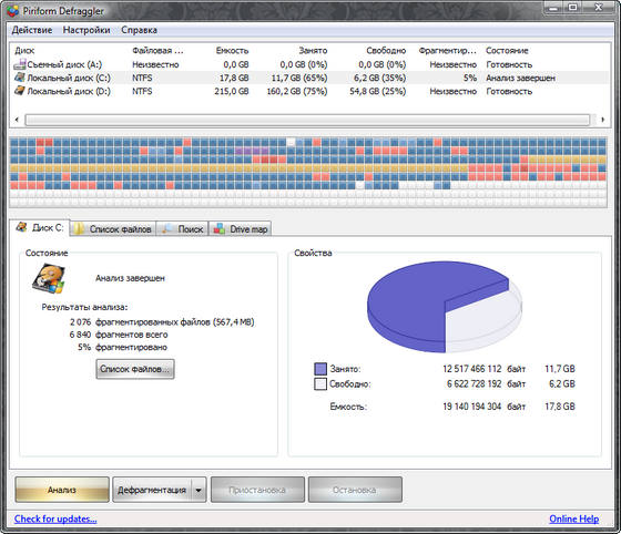 Defraggler - программа для дефрагментации жестких дисков. По словам разработчика, Defraggler отличается от других продуктов на рынке, прежде всего, тем, что позволяет дефрагментировать не только жесткий диск целиком, но и отдельные файлы. Программа предлагает простой и понятный интерфейс, поддерживает Windows 2000, 2003, XP, Vista и 7, в том числе 64-битные версии, работает с файловыми системами FAT32 и NTFS.
