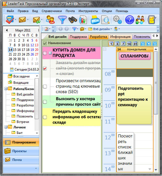 - Ежедневник. LeaderTask - органайзер для планирования повседневных задач, используйте его в роли ежедневника для управления задачами.