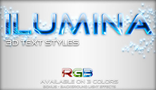 Ilumina - это стили текста для Photoshop с глянцевым 3D эффектом.