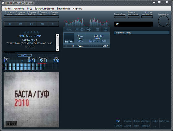 По отзывам плеерок очень хорош, аимп рядом по качеству звука не валялся, хотя очень удобен. КМплейрок по звуку заметно лучше аимпа. Вот решил попробовать foobar. На Win 7 x64 завёлся без проблем. Буду тестить воспроизведение 5.1 и DTS.