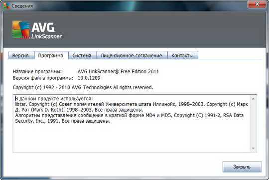 Скачать программу AVG LinkScanner Free Edition 2011 10.0.1209a3533 х86 (68,62 МБ):