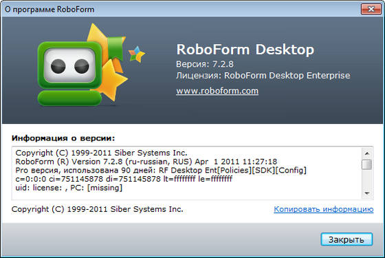 Скачать программу AI RoboForm Enterprise 7.2.8 Final (7,31 МБ):