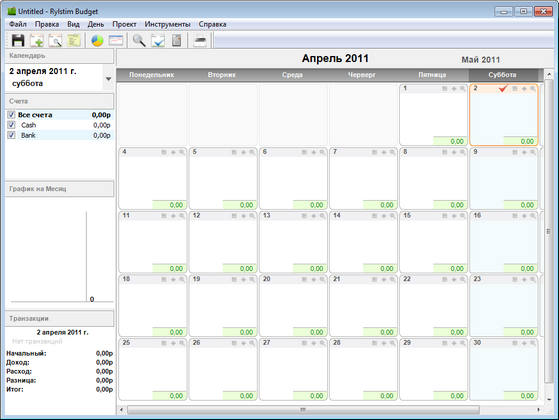 Rylstim Budget предлагает вам все удобства, которые необходимы для управления персональными финансами. Вы можете добавлять и изменять счета, категории доходов и расходов, получать информацию о состоянии проекта в виде графиков на любой день и защитить ваш проект паролем. Программа позволяет распечатать отчет на любой день, любой месяц, получить итоговый отчет по всему проекту или же просто распечатать календарь.