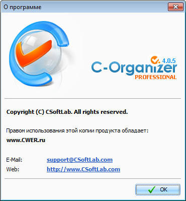Скачать программу C-Organizer Professional 4.0.5 (14,23 МБ):