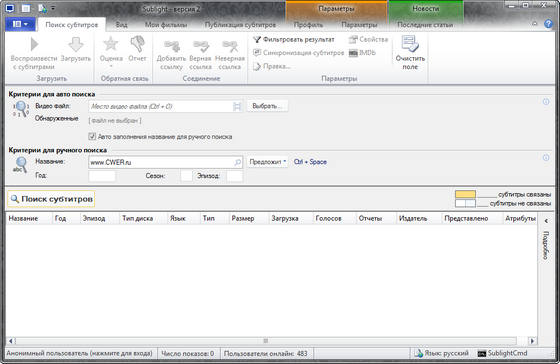 Sublight - компактная и очень удобная программа для работы с субтитрами медиафайлов. Приложение выполняет поиск субтитров по нескольким критериям, например, название фильма, год выпуска и многие другие. Результаты отображаются в виде списка, из которого вы можете выбирать и загружать необходимые субтитры.