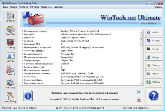 WinTools.net – набор инструментов для оптимизации операционной системы Windows. В состав программы входят компоненты для полного удаления нежелательных программ и «мертвых» ссылок реестра, а также для контроля процессов, настройки системы, интернет-соединений и интерфейса. Кроме того, имеются утилиты для надежного хранения конфиденциальной информации.