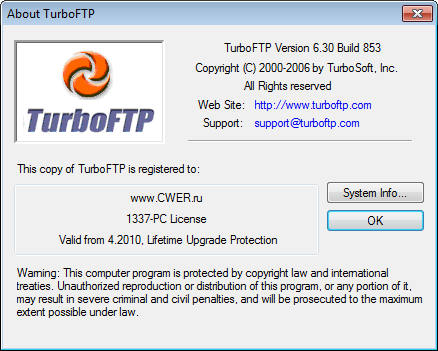 Скачать программу TurboFTP 6.30 Build 853 (7,7 МБ):