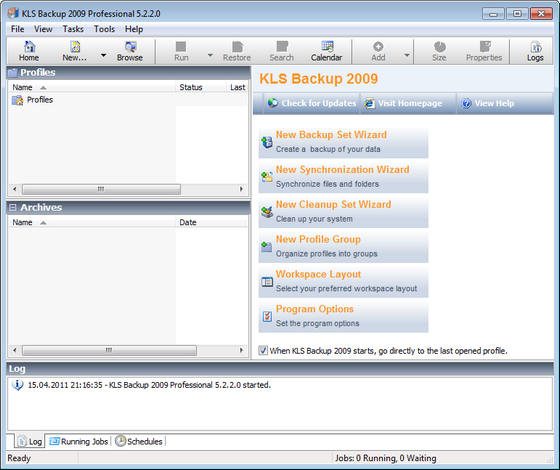 KLS Backup 2009 предназначена для архивирования и создания резервных копий Вашей важной информации. KLS Backup сжимает информацию в ZIP-архивы и позволяет их сохранять на любые накопители, включая сетевые и FTP-сервера. Работа программы достаточно быстра и корректна, возможность создания инкрементных копий поддерживается. В программе весьма неплохо организован планировщик заданий, а интерфейс программы будет понятен даже начинающим пользователям!