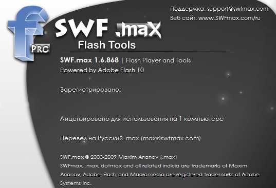 - Можно извлечь клип из проектора в отдельный файл или, наоборот, сохранить клип как проектор. Проекторы, созданные с помощью SWF.max занимают даже меньше места, чем обычные.
