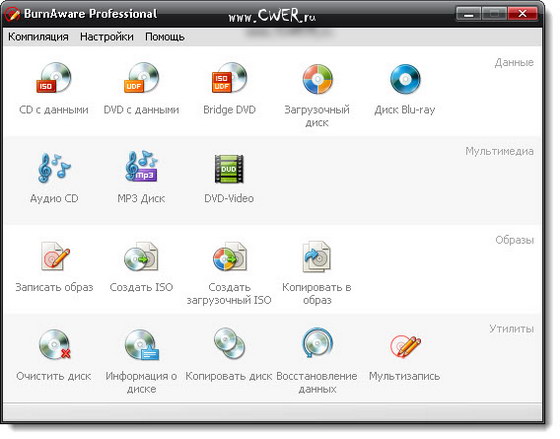 BurnAware Professional - относительно небольшая и простая в использовании программа для записи информации и музыкальных композиций на CD, DVD, Blu-Ray и HD-DVD диски, которая пригодится как опытным пользователям, так и новичкам. BurnAware поддерживает работу со всеми типа оптических дисков (включая CD-R/RW, DVD-R/RW, DVD+R/RW, BD-R/RE, HD-DVD-R/RW и DVD-RAM) и аппаратными устройствами записи. Утилита поддерживает создание образов, способна писать мультисессионные диски, имеет опцию проверки записанного содержимого, работает под операционными системами Windows 98/ME/NT/2000/XP/Vista/7 (32/64-bits).