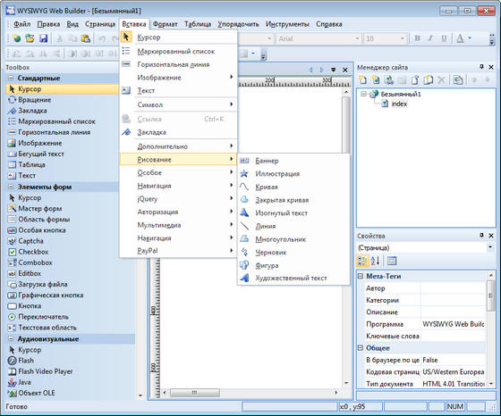 WYSIWYG Web Builder - программа для создания веб-страниц, которая автоматически создает HTML-код, в то время, как вы просто размещаете объекты, т.е. знание HTML от вас совершенно не требуется. Просто перетащите необходимые объекты в любое место страницы. После этого останется только закачать получившиеся файлы на сервер, с помощью встроенного инструмента "Публикация". Имеет, практически, все возможности MS Frontpage, но содержит значительно больше инструментов для работы с объектами (изображения, текст, таблицы и т.д.). Благодаря WYSIWYG Web Builder веб-страница в Интернете будет иметь точно такой же вид, как на экране ПК, независимо от используемого браузера.