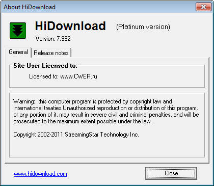 Скачать программу HiDownload Platinum 7.992 (3,51 МБ):