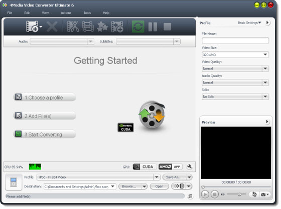 4Media Video Converter Ultimate - конвертер большинства популярных аудио и видео форматов в другие аудио и видео форматы, поддержка MOV, AVI, WMV, MPEG1/2/4, 3GP, ASF, MP4, MP2, MP3, WMA, OGG, AAC, M4A, WAV, AC3 и других форматов, поддержка iPod, Apple TV, PSP, PS3, Zune, Archos, iRiver, Creative Zen аудио и видео форматов, конвертирование видео из одного в формата в другой, извлечение аудио в MP3, WMA, OGG, AAC, M4A, WAV, AC3 форматы, пакетный режим конвертирования, выбор и настройка качества, разрешения, битрейда, фреймрейда и других параметров, предварительный просмотр результата в встроенном проигрывателе.