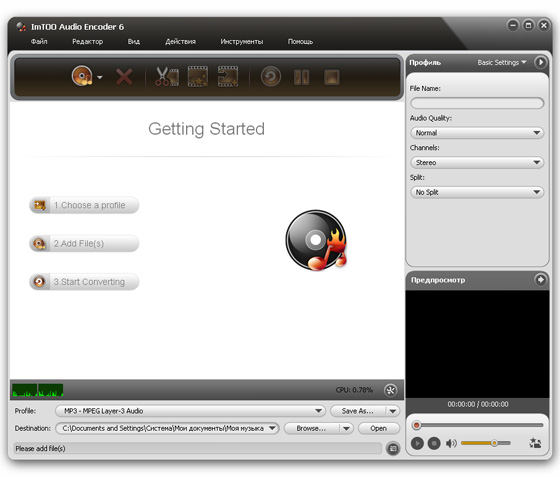 ImTOO Audio Encoder - это все что вам нужно для конвертирования между множеством аудио форматов, а также извлечением аудио из большинства видео форматов. Среди множества различных медиа форматов поддерживаемых этим аудио конвертором охватываются видео (такие как AVI, MPEG, WMV, MP4, FLV, MKV), высокой четкости (HD) видео (такие как H.264/MPEG-4 AVC, AVCHD), и аудио (такие как MP3, WMA, WAV, AAC, FLAC, OGG, APE).