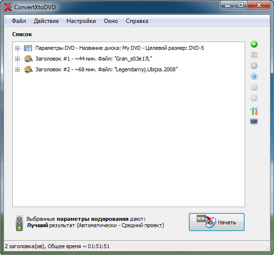 Программа обладает всеми функция, которые потребуются при конвертации обычных видеофайлов в DVD: