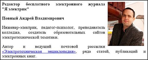 Электронный электротехнический журнал для облегчения жизни специалистов-электриков. В этом выпуске вы найдете 7 статей на различную тематику. Все издания являются бескорыстным вкладом А. Повного в электротехническое образование населения Интернета.
