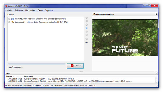 ConvertXtoDVD - программа предназначена для преобразования видео в формат, совместимый с DVD Video, и последующей записи содержимого на DVD. Программа поддерживает видеофайлы Mpeg, Mpeg, Mpeg4, MP4, VOB, WMV, DV, AVI, а также потоковое видео. Для работы программы не нужны внешние AVI-кодеки, поскольку она использует собственные. ConvertXtoDVD может автоматически создавать фрагменты (chapters), поддерживает наличие нескольких аудиодорожек, работает с субтитрами (.SRT .SUB/IDX .SSA). Также программа поддерживает создание несложного меню для DVD, в котором можно установить фон, выбрать цвет и другие параметры шрифта для надписей.
