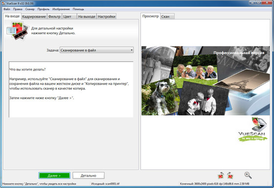 VueScan - программа для работы со сканерами HP, Minolta, Nikon, Polaroid, Epson, Canon и другими. Может работать с внутренней глубиной цвета. VueScan поддерживает автоматическую и ручную настройку большинства параметров и пакетный режим сканирования. Поддерживается более 700 моделей сканеров с определенным перевесом в сторону слайд-сканеров — Nikon, Minolta, Polaroid, Microtek, Epson. Предусмотрено автоматическое удаление дефектов изображения за счет канала инфракрасного сканирования и многопроходное сканирование с последующим усреднением результата — для подавления собственных шумов сканера. Имеются фильтры подавления зерна, нерезкого маскирования и удаления паразитного оттенка оригинала. Есть средства ручной корректировки динамического диапазона и градационной характеристики (независимо по каналам R, G, B).