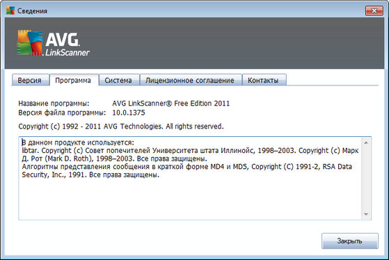 Скачать программу AVG LinkScanner Free Edition 2011 10.0.1375a3626 x86 (78,29 МБ):