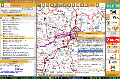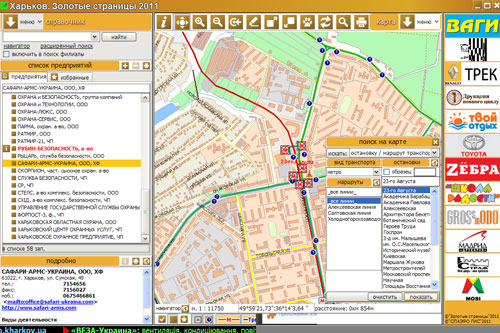 Электронная версия справочника «Харьков. Золотые страницы 2011» включает информационную систему, состоящую из: базы данных предприятий, организаций, учреждений города Харькова и Харьковской области с возможностью поиска по названию, адресу, виду деятельности и т.д.