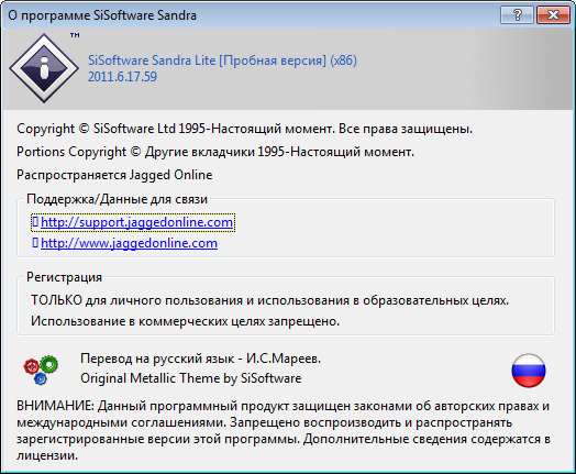 Скачать программу SiSoftware Sandra Lite 2011.6 v17.59 (53,51 МБ):